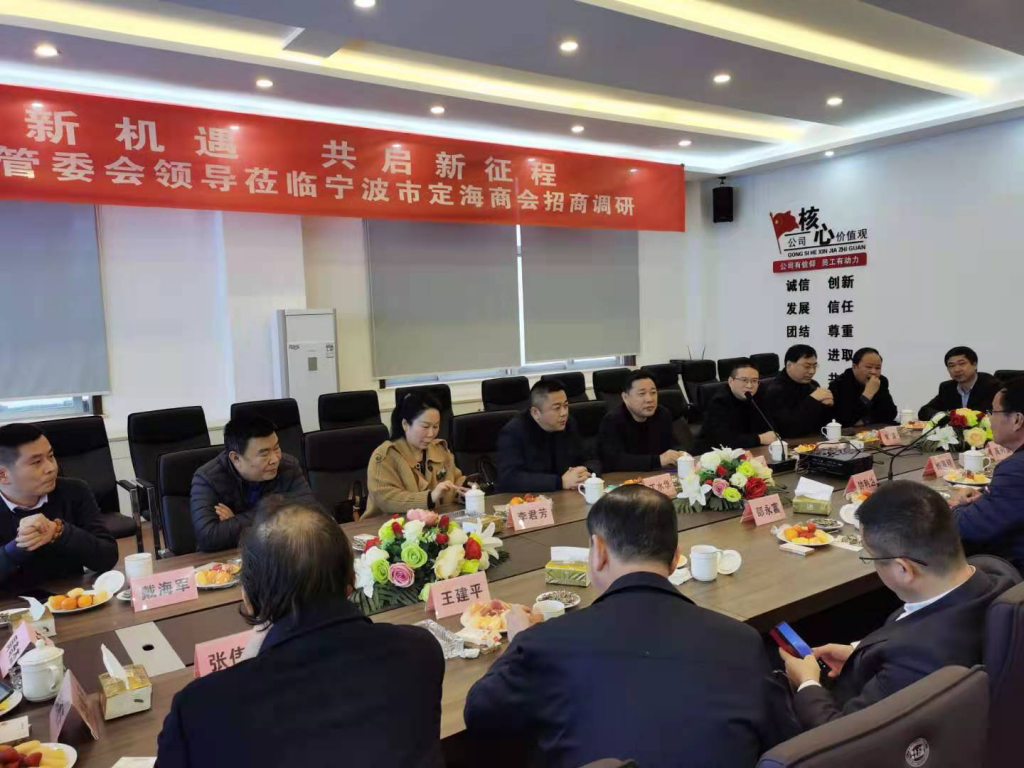 舟山市金塘管委會赴甬招商調(diào)研暨定海商會會長會議在川寧環(huán)保公司召開
